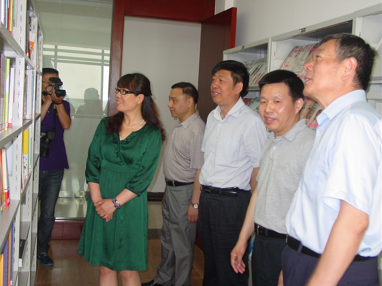 右圖為楊紀(jì)朝副會(huì)長(zhǎng)(右一)一行在市委、市經(jīng)信委和公司領(lǐng)導(dǎo)的陪同下在公司圖書室參觀的場(chǎng)景。